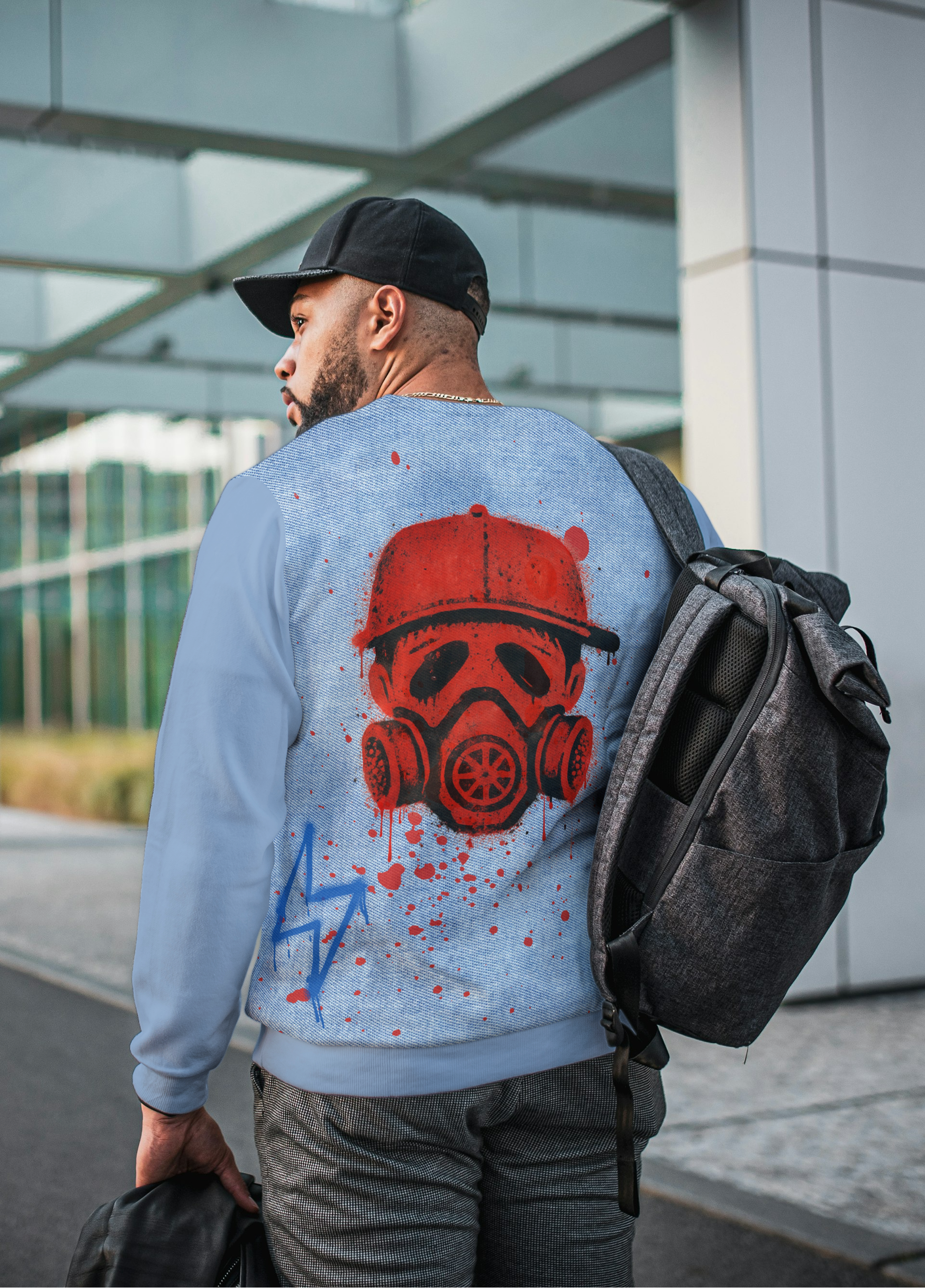This sweatshirt merges a soft denim-wash aesthetic with bold graphic expression, creating a look that sits perfectly in the world of alt fashion. The front features the Underground Habitat name rendered in a spray-paint–inspired type, giving the piece a raw, creative edge.